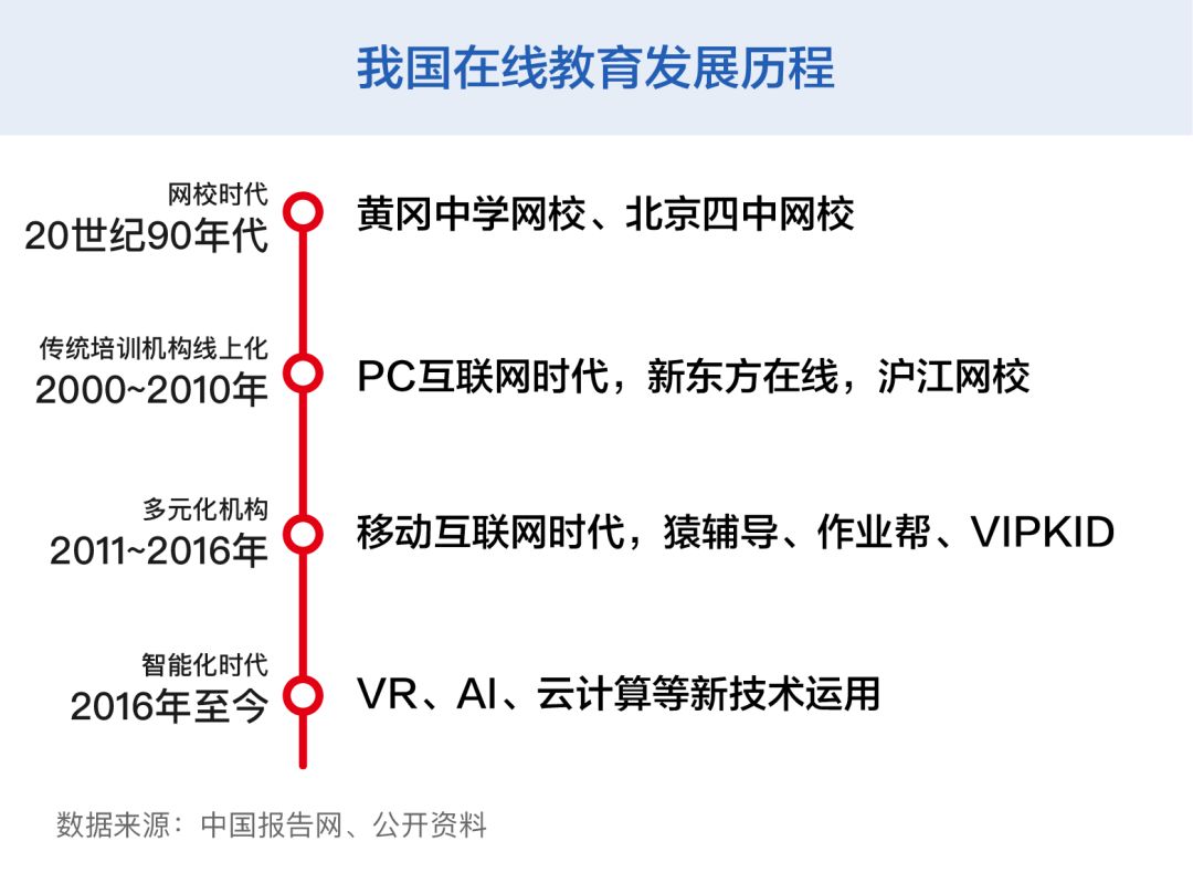 在線教育并不是什么新鮮事。20世紀(jì)90年代末,互聯(lián)網(wǎng)進(jìn)入中國。當(dāng)時黃岡中學(xué)、北京四中等名校開辦的網(wǎng)絡(luò)學(xué)校拉開了中國網(wǎng)絡(luò)教育的序幕,“互聯(lián)網(wǎng)+教育”模式得到認(rèn)可。
